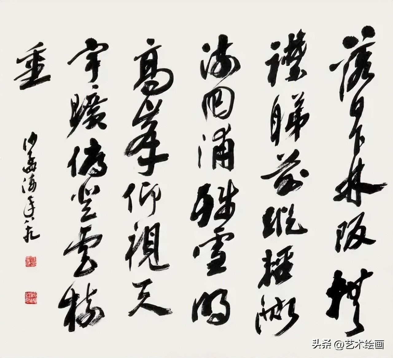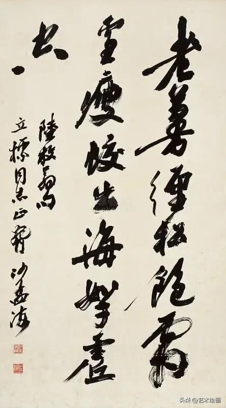 他87岁高龄时书写的六尺见方的巨幅“龙”字,也是他擘窠大字的代表,被书法界誉为极品