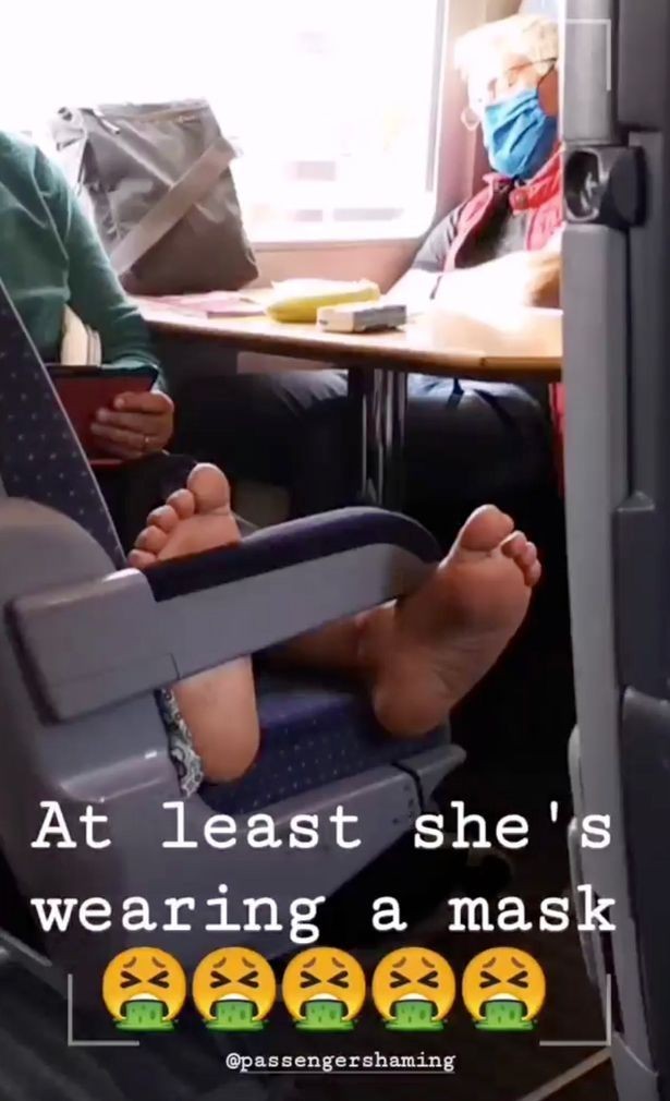 据外媒5月20日报道,近日一名外国网友在社交媒体上晒出了一件自己在德国乘火车时的糟心事:坐在他前面的一位女乘客把光脚搁在座椅上,还一人占了两个座位。