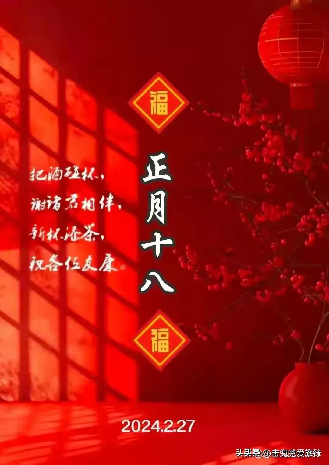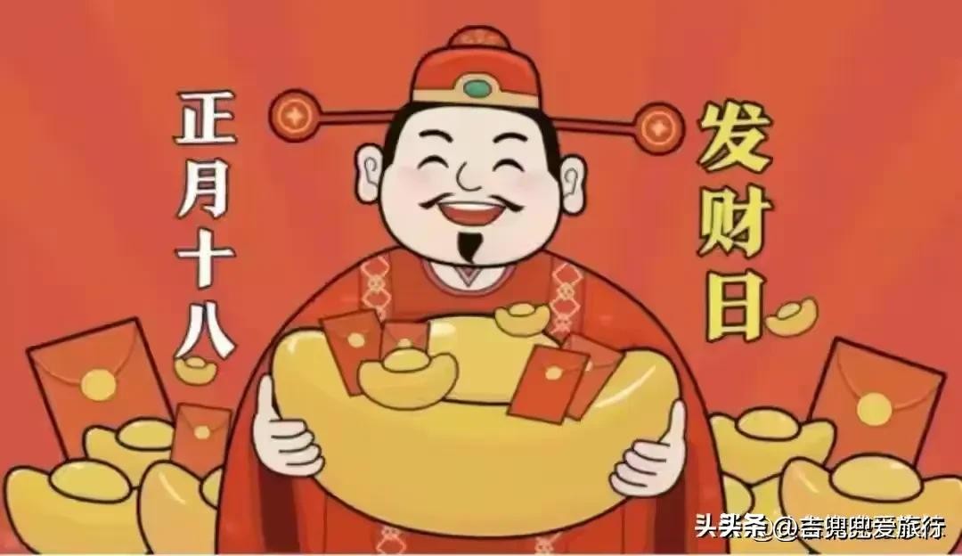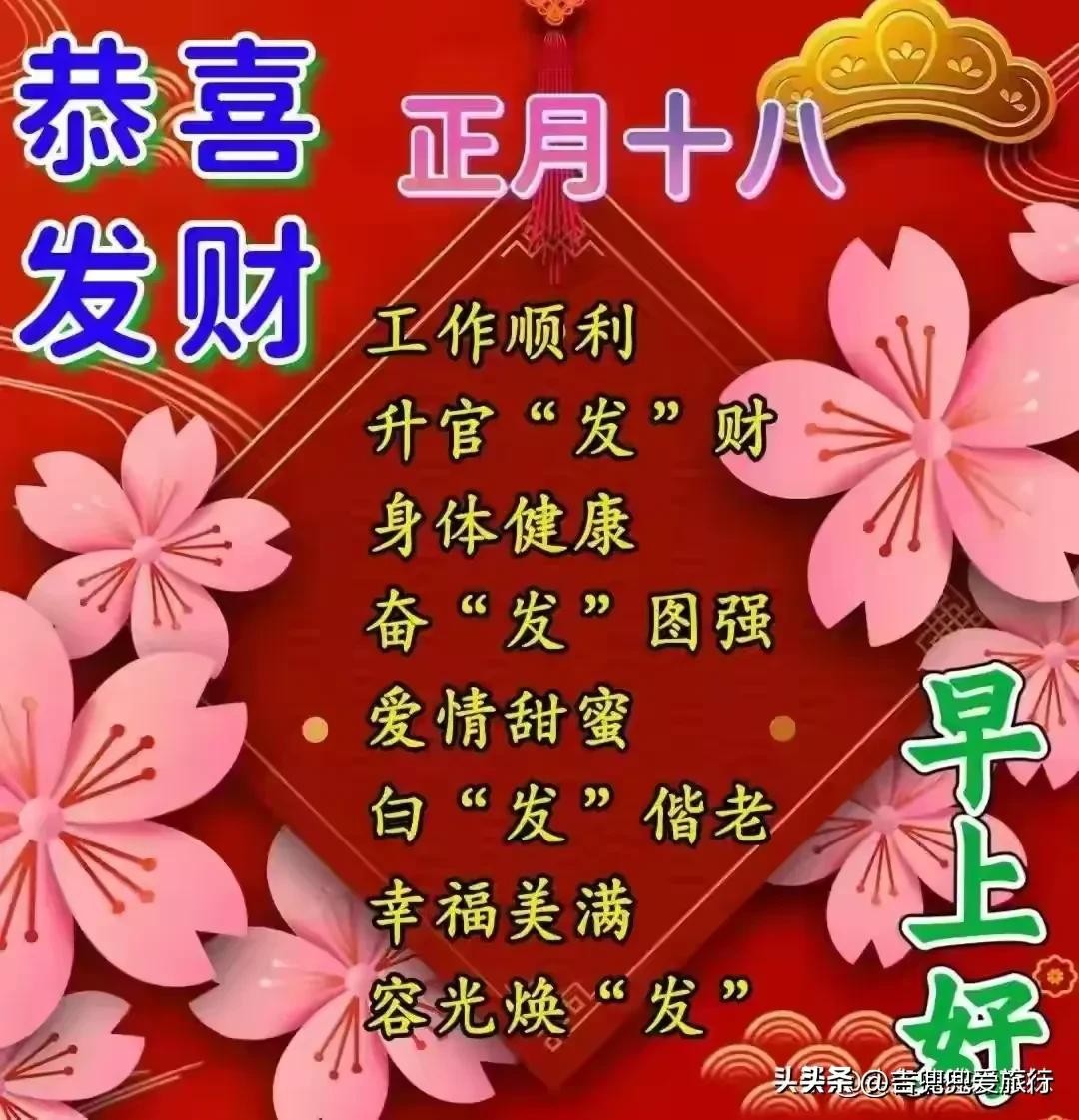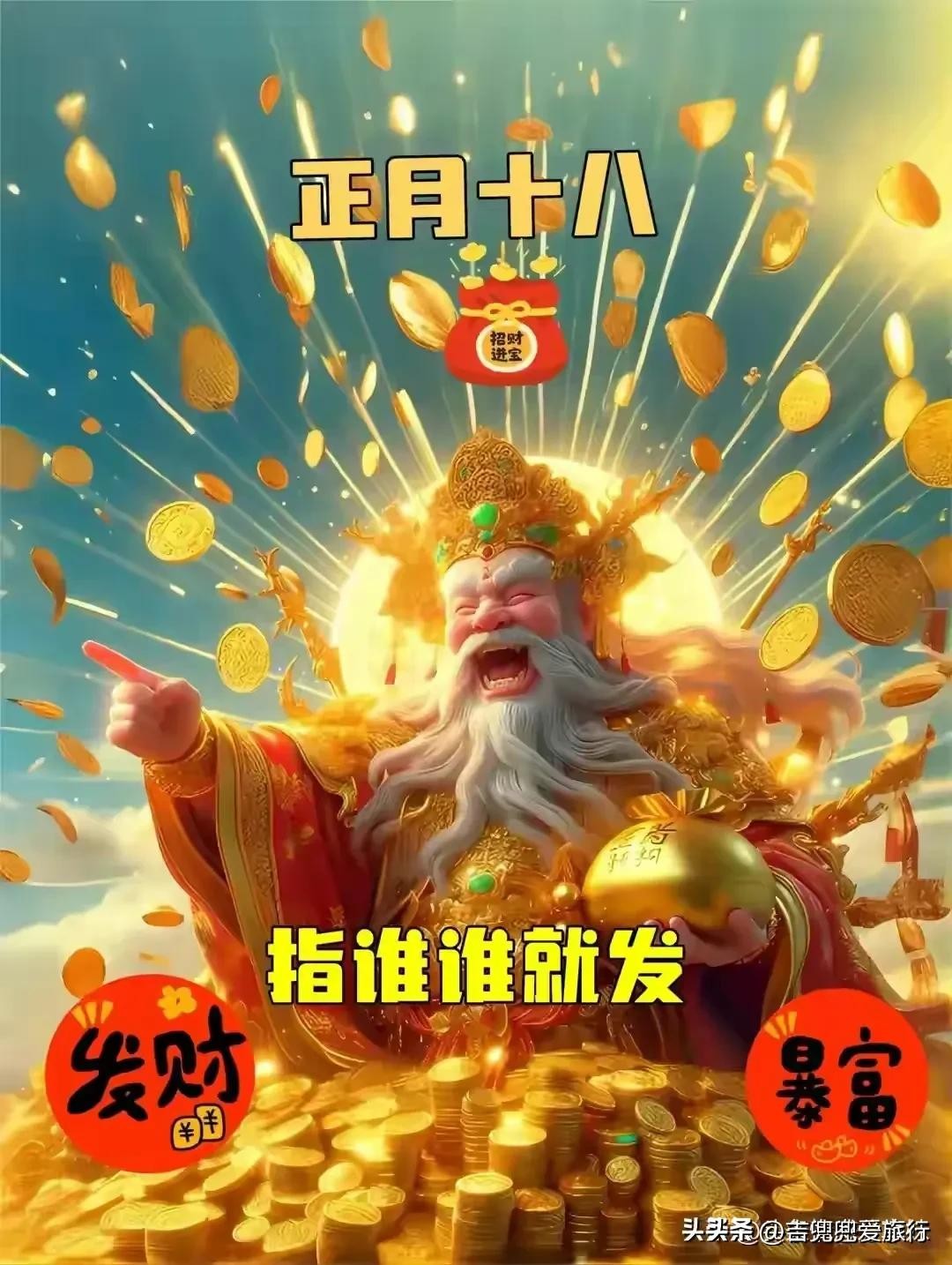 大吉大利,正月十八;八方来财,财源滚滚。温馨祝福问候 图送亲友