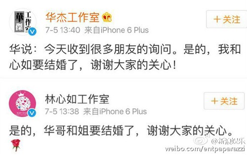 正所谓,祸不单行,哦不不,是好事成双,老男人霍建华与不老女人林心如也高调宣布结婚。