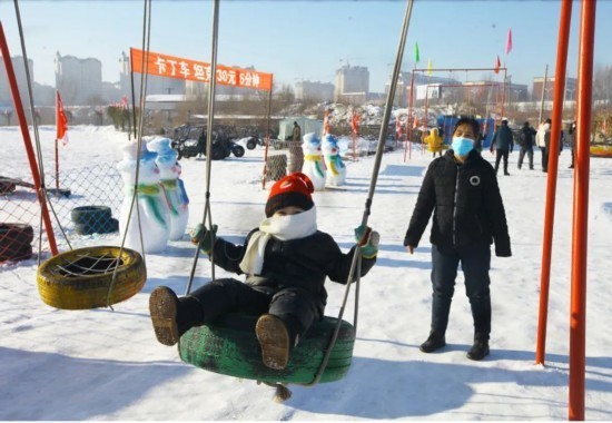 1月4日,在辽源市西安区凯迪冰雪乐园内,游客们正在园内游玩,各种雪上娱乐项目让游客喜笑颜开。