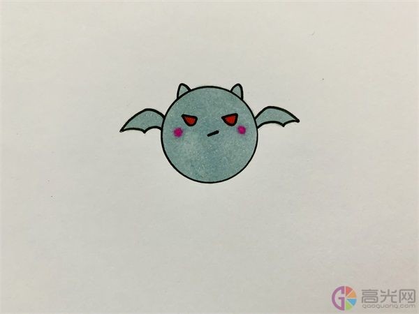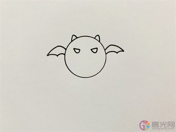 3、 接着画出蝙蝠的眼睛,眼睛画的凶一点。