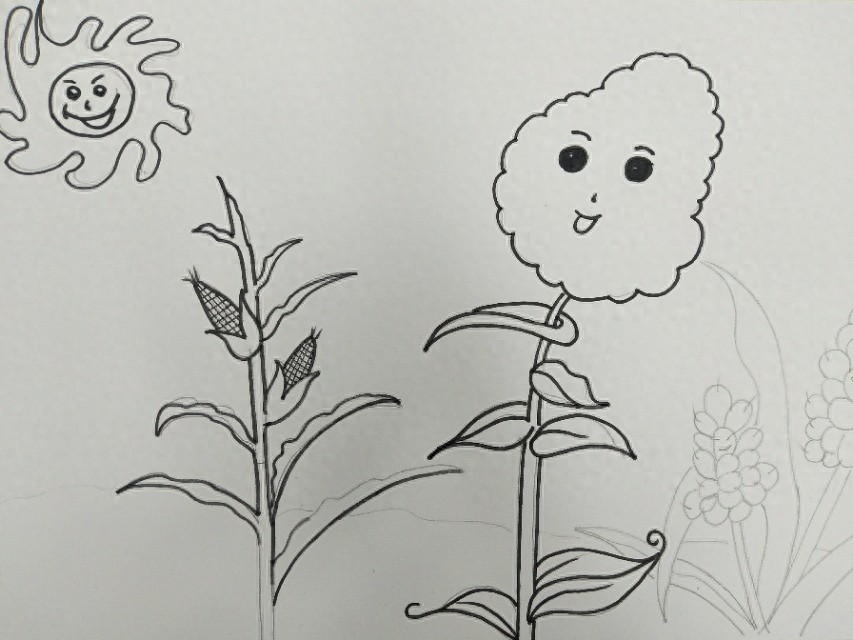 第一步:用铅笔✏画出农作物的在轮廓线,然后用勾线笔勾出来,线条尽量流畅一些!