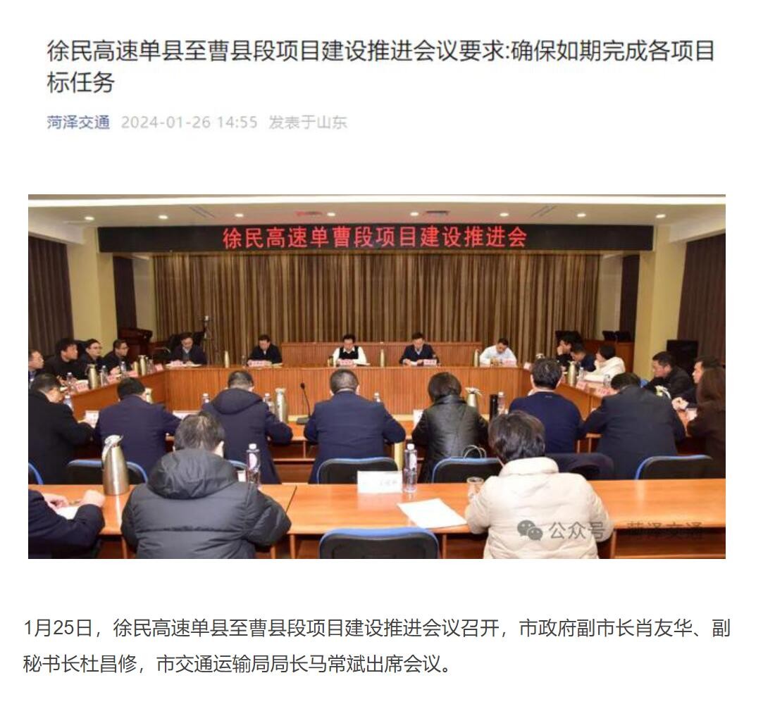 2024年1月份召开的徐民高速山东段建设会议