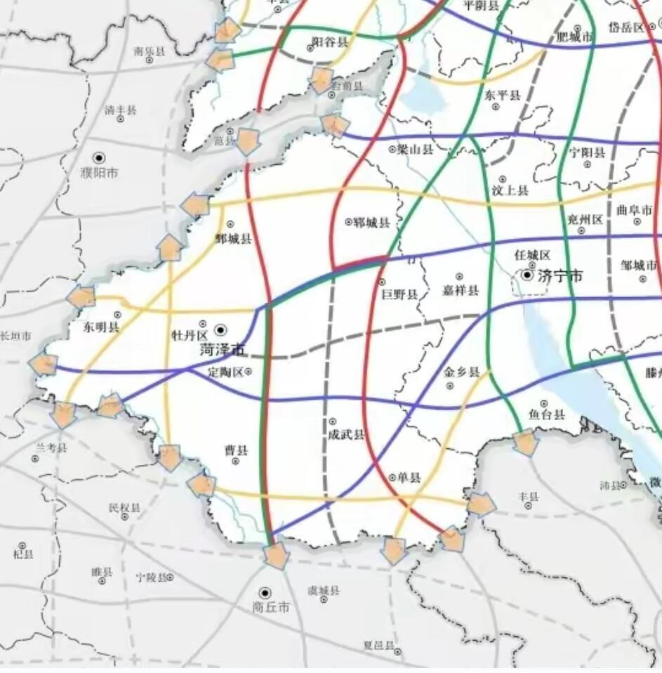 岚曹高速从日照岚山经过临沂到枣庄然后北上借道京台高速进入济宁菏泽