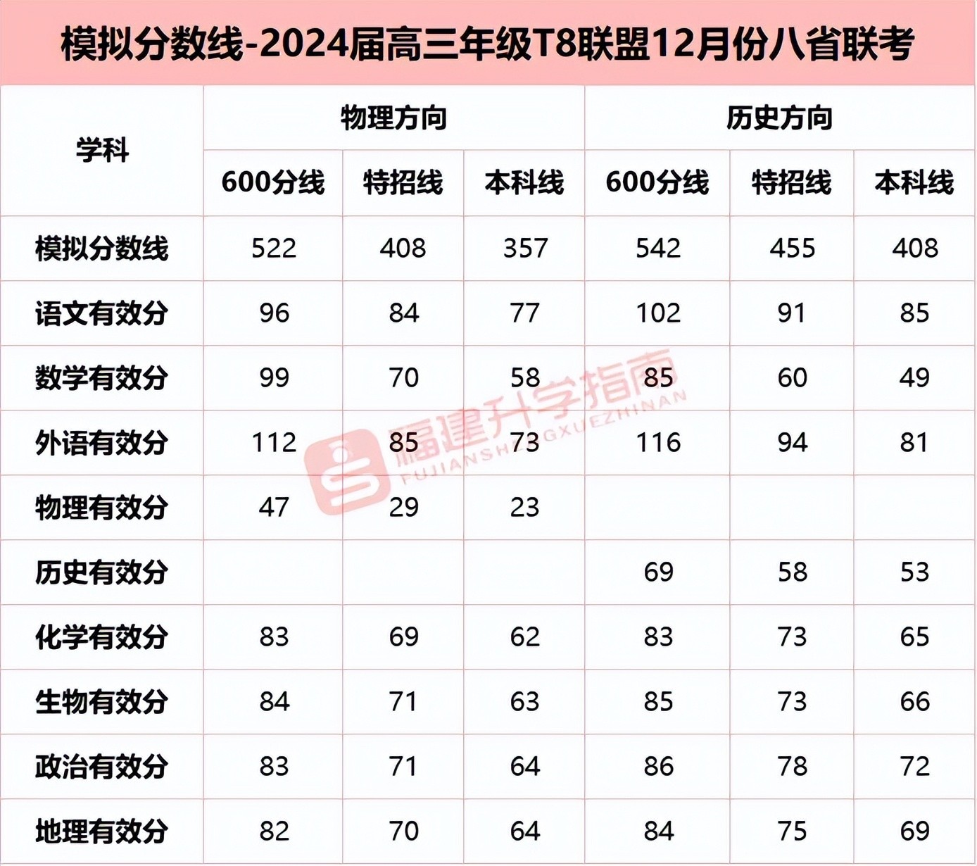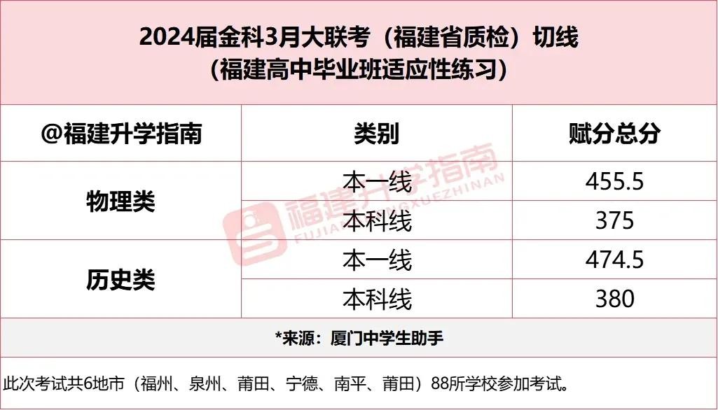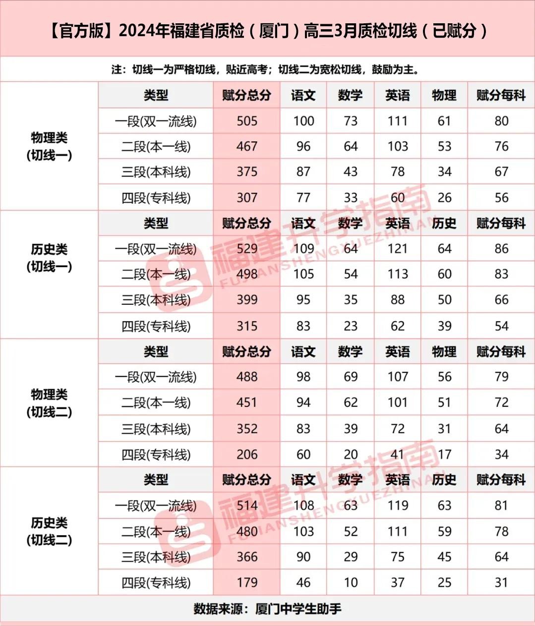 2024届金科3月大联考(福建省质检)切线公布。历史类共有0.78万人参考,物理类3.45万人参考。切线如下——
