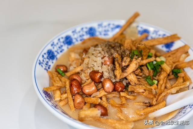 油茶馓子是四川南充的一道特色早餐,制作起来比较简单,澄黄色的糊状油茶配上花生等各种配料和调料,最后再撒上掐碎的馓子,堆成金碧辉煌的“冒儿头”,一碗美味早餐就做好了,吃的时候,搅拌一下,吃起来口感特别丰富,油茶的柔软和花生撒子的脆,层次感特别分明,味道非常好,老人小孩皆宜。