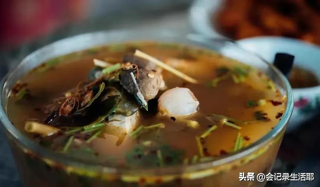 阆中三绝汤是阆中酒店推出了一道名为“三绝汤”的创意菜品,它是用将牛肉、蒸馍切成小块,放油中一酥,使之颜色金黄,再配上高汤,根据不同口味加醋,最后煮沸,美味即成。它的特色就在于是汤又是粥,牛肉肉质酥软,蒸馍口感爽口,醋的香气四溢。虽然它是近年来才创出的,但是光是这道菜集合了阆中三种特产的美味,就已经是给了游客一口吃掉三种特产的美食享受了。