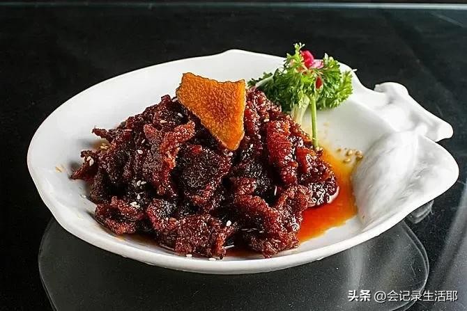 陈皮牛肉是四川南充南部县的传统名菜,是用牛肉、陈皮为主要食材,加以配料制作而成。成品看起来色泽红亮,吃起来质地非常酥软,麻辣回甜,陈皮味香。在我看来真的算是一道药膳了,不仅开胃化痰,还能助消化。