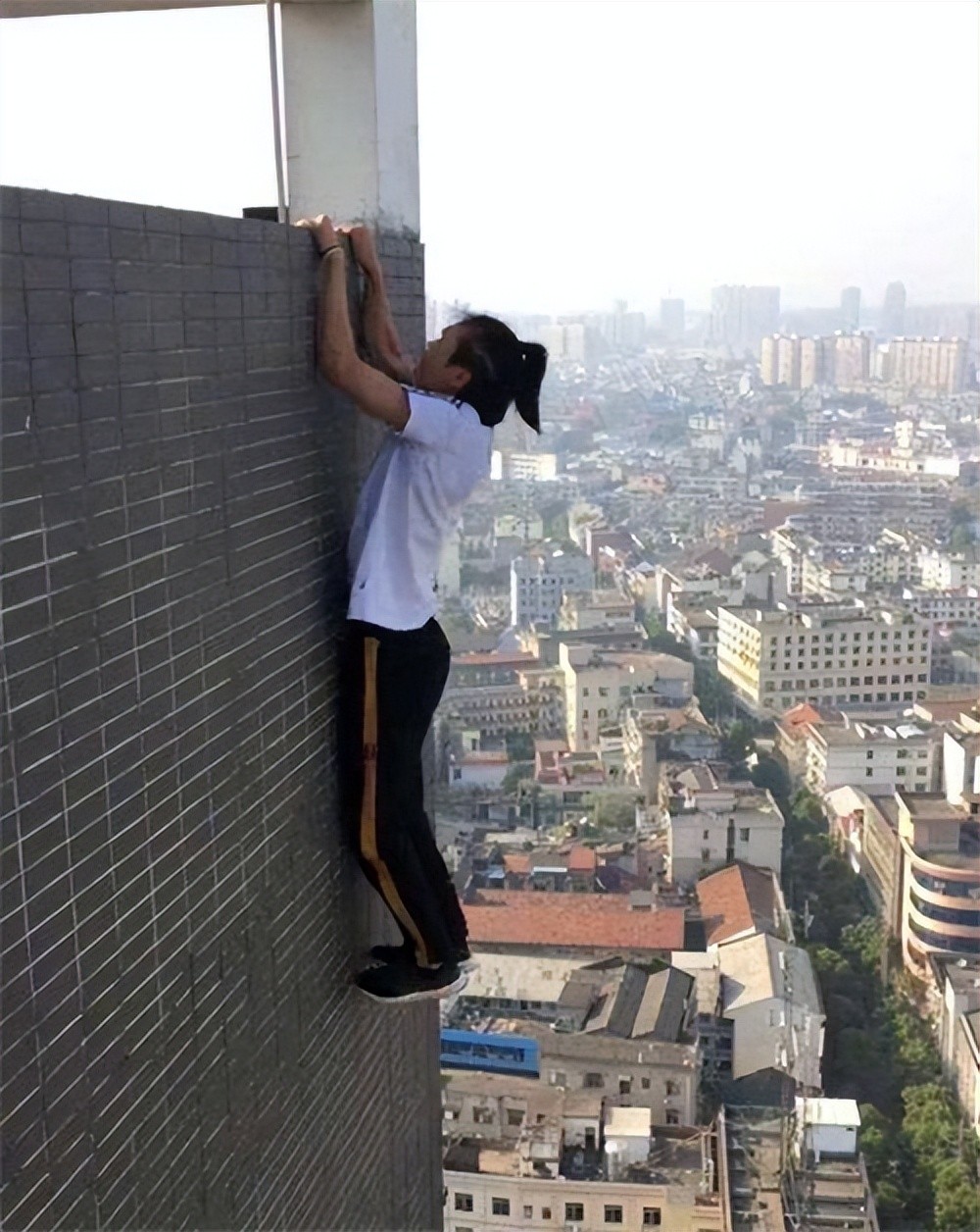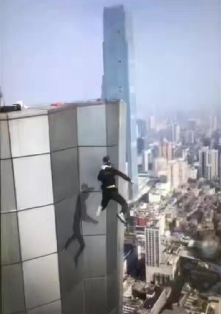 他站在了顶楼边缘,身上没有任何保护措施。他往楼底下望了望,然后退后几步做起了热身。与此同时,还有一部手机被绑在了吴永宁的身上。这部手机,应该已经随着他的坠落而不知所踪了。