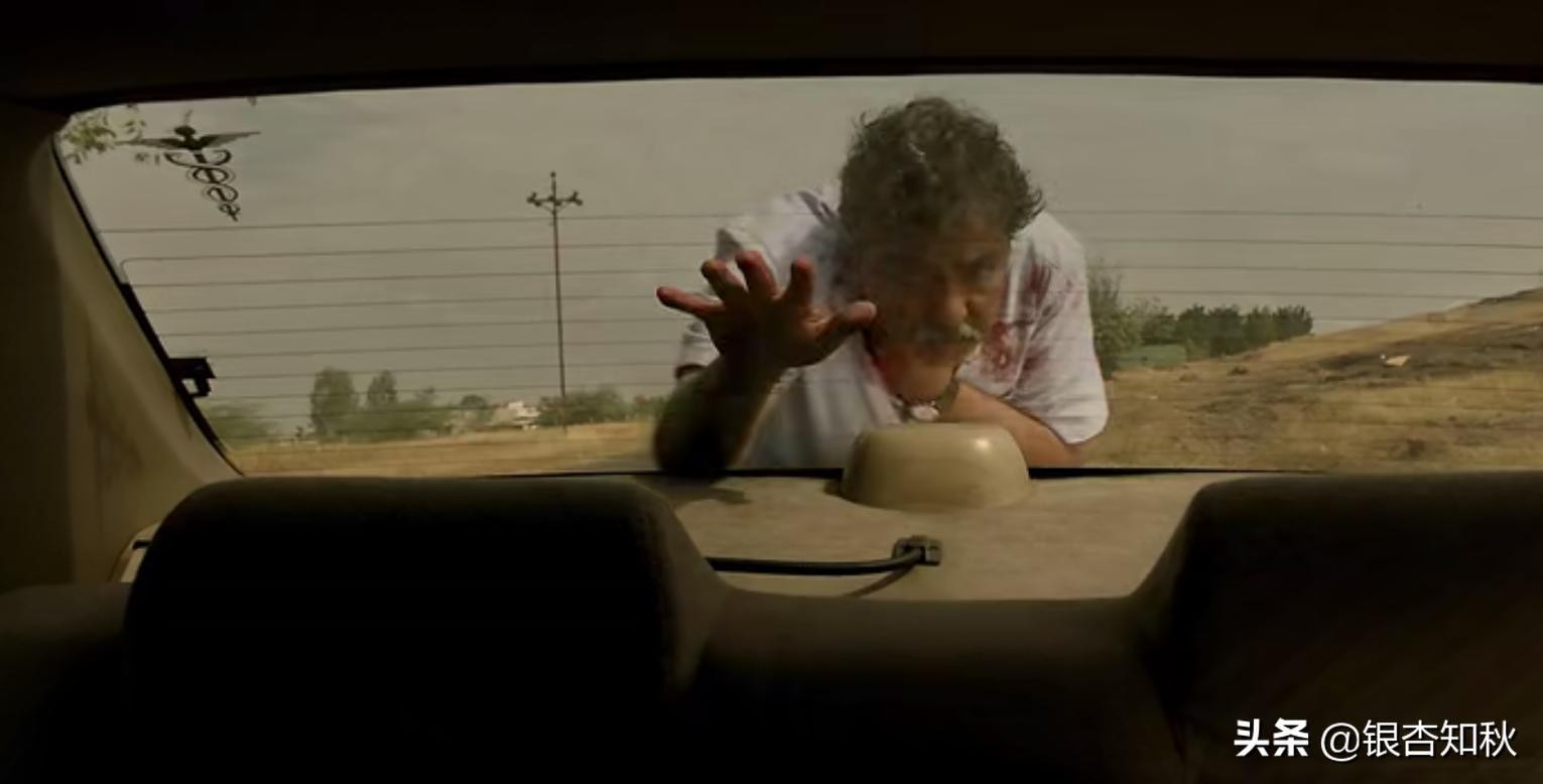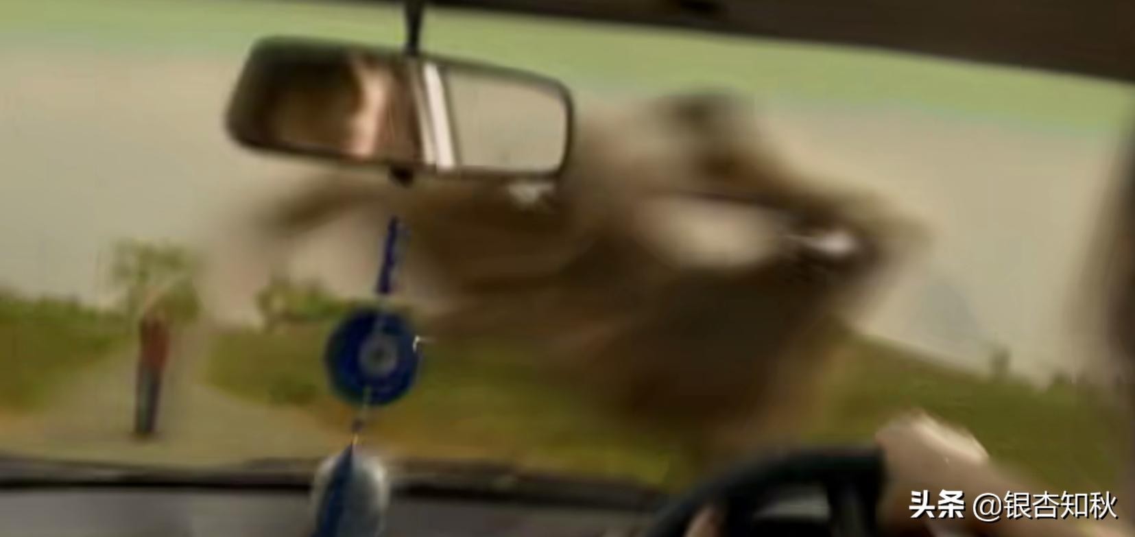这里与影片开头想呼应,解释了黑屏状态下声音的由来,猎人开抢打兔子,受到惊吓的兔子高高跳起挡住了西米的视线,西米没能控制住车前进的方向,没能撞死阿卡什,而且发生了车祸,自己却在爆炸死去。