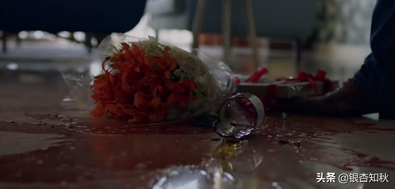 影片此时重现了命案发生时的场景。普拉默想给妻子一个惊喜,告诉妻子今天晚上才能回来。下午当他带着鲜花、红酒、巧克力回来找寻妻子的时候。