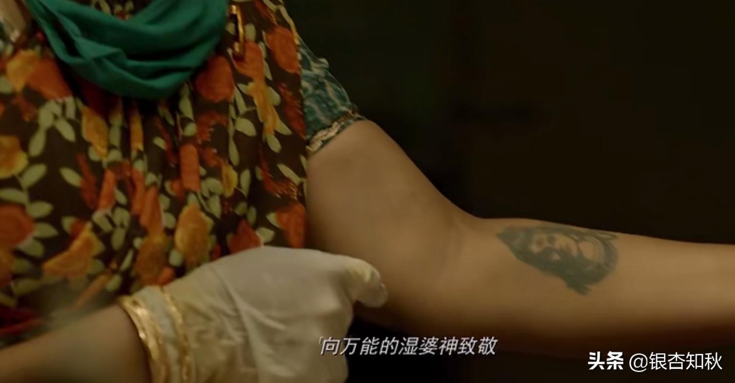 从女性手臂上纹着的湿婆纹身可以看出,印度底层人群对湿婆的迷信程度,以及在更大利益的诱惑下贪婪的一面。毕竟阿卡什两个肾也才 20 万卢比,阿卡什前面提到的可是 1000 万卢比,因此他们选择暂时相信阿卡什。