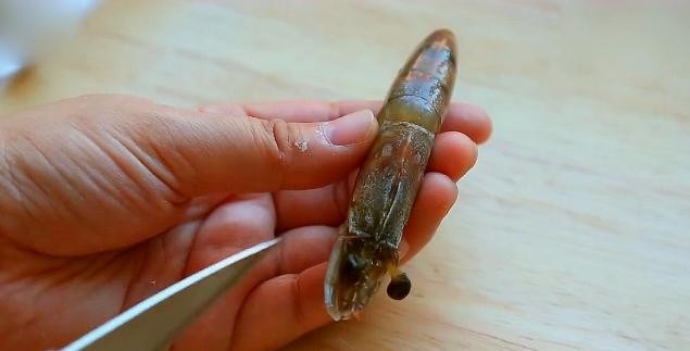 当虾线刀或小刀划到虾的尾部时,我们就可以轻轻地将虾线拉出来了。这个时候,你会发现虾线非常完整地被取了出来,虾身也没有受到任何损伤。如果虾线没有完全取出,我们可以再次用小刀轻轻地在虾背部划一下,直到虾线完全取出为止。