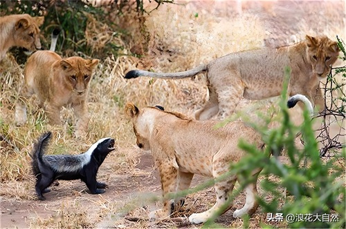 蜜獾自身的防御机制也影响着狮子对它的态度。蜜獾皮肤坚韧、松弛,毛发粗糙,能抵御一定程度的攻击。受到威胁时,蜜獾还会发出尖叫,并释放有刺激性气味的液体来威慑敌人。这些防御手段虽不能完全抵御花豹,但对狮子而言,捕杀蜜獾的麻烦超过了食物价值,所以狮子通常会避开蜜獾。