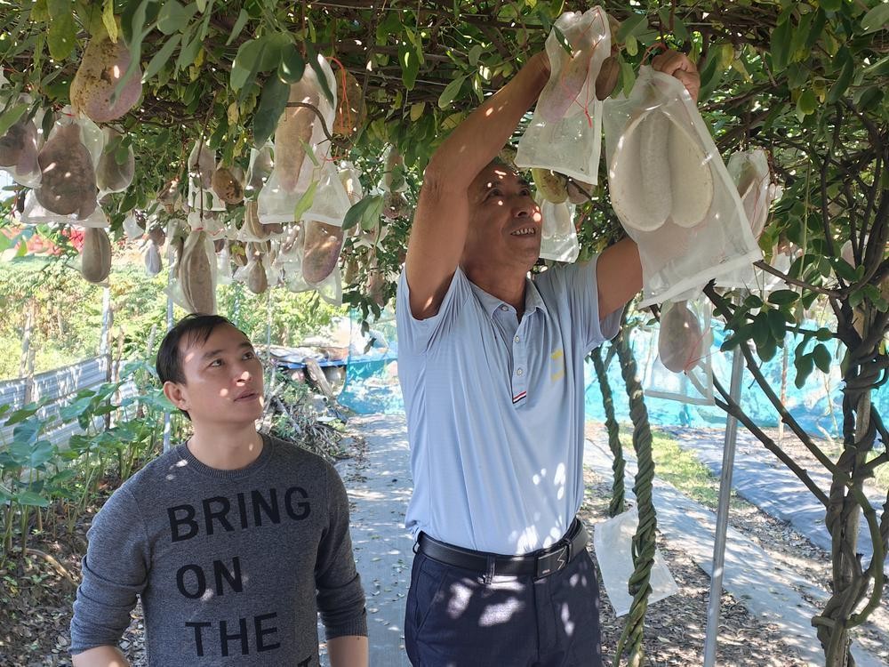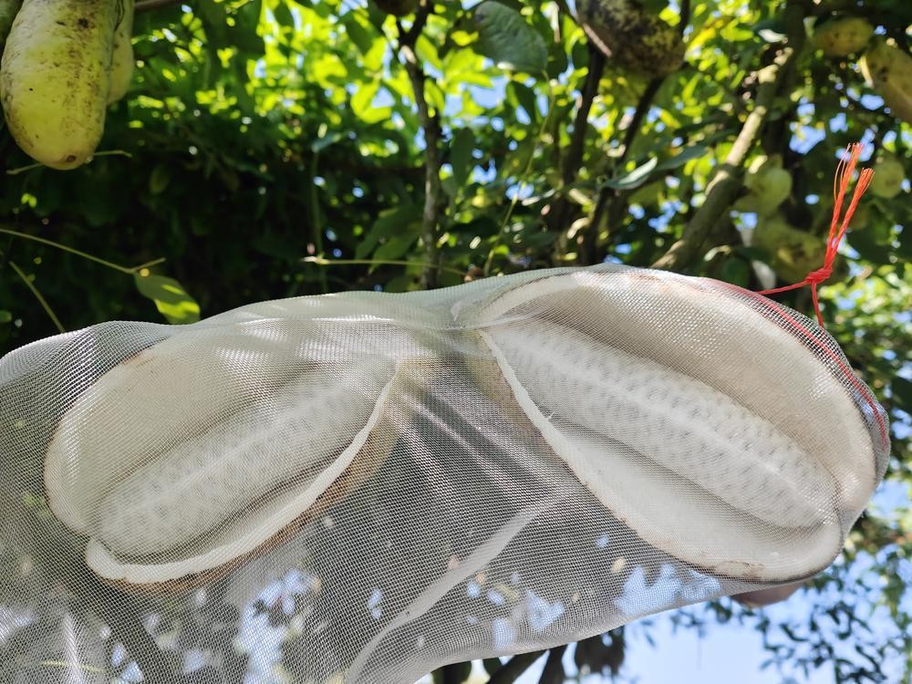 园主钟祥华正在采摘成熟的“八月炸”,同时对晚熟品种套上防虫网袋,防止虫鸟的侵食。他向记者介绍,这原本在山上的野果,经过四年的种植,已经算是水果界里的“小网红”了,争相尝鲜的客人不少,今年的产量高,销售也不错。“现在以游客果园采摘和网络销售为主,珠三角、重庆、福建都销了很多,最远的销售到了内蒙古。”