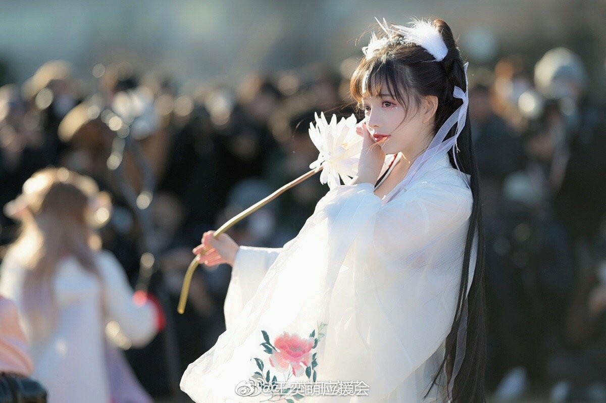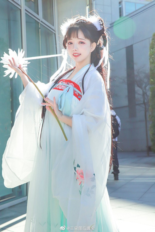 另外最让我感动的就是奕萌说过这样一句话“我有一个梦想,就是想让我们的汉服走出国门。”她不仅是这么说,也是这么做的。在日本的C97漫展上,唯一一个穿着汉服,行着作揖礼的女孩。