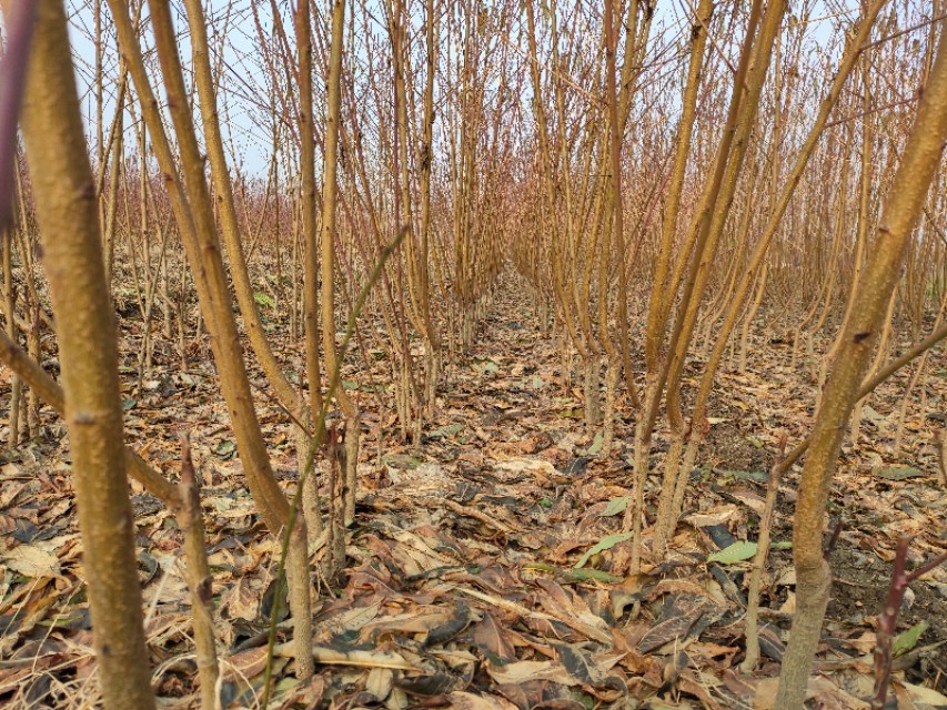3、苗木定植以后,应及时定干,即剪口下保留3~5个充实饱满的叶芽,并兼顾70~80cm高。苗木发芽后,易受卷叶娥、蚜虫、金龟子等害虫危害,及时进行人工防治或喷药防治。离地面30厘米以下的萌蘖及时抹除。