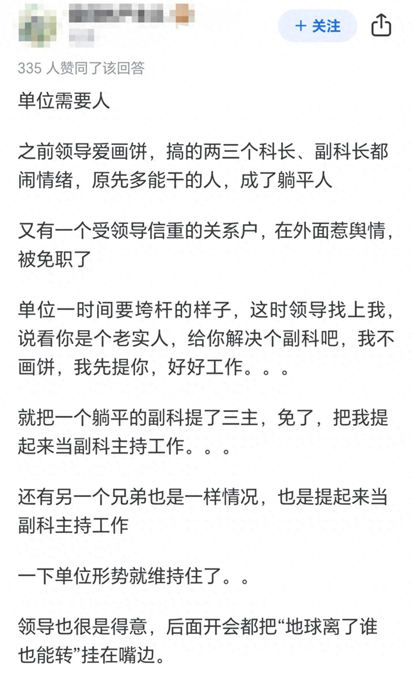 我认识一个在重庆工作的朋友,兢兢业业干了好几年,成绩也有,可就是提拔不上去。看着那些不如他的人一个个往上走,他心里那个憋屈啊。