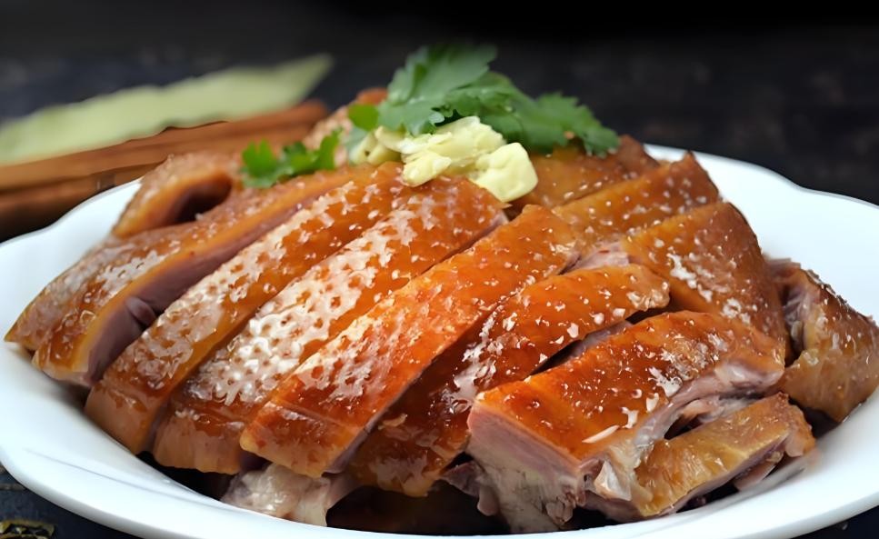 无为板鸭是安徽无为县的传统名菜。其制作工艺讲究,选用当地优质的麻鸭。在制作时,先将鸭子腌制,然后经过熏烤等多道工序。成品的无为板鸭外皮金黄酥脆,肉质鲜嫩。它的味道以咸香为主,鸭肉紧实有嚼劲,鸭皮的酥脆和鸭肉的鲜嫩形成鲜明的对比。这种独特的口感和风味,使得无为板鸭无论是作为餐桌上的一道主菜,还是作为休闲小吃都非常受欢迎,反映了徽菜在禽类菜肴制作上的独特工艺。