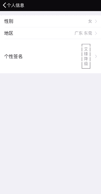 最近有果粉发现,微信地区居然可以设置为中国,隐藏省和市,这可能是个BUG吧!所以各位想弄的,提早修改,以后不知道会不会修复,最终效果图如下,地区只显示中国,没有显示省和市。