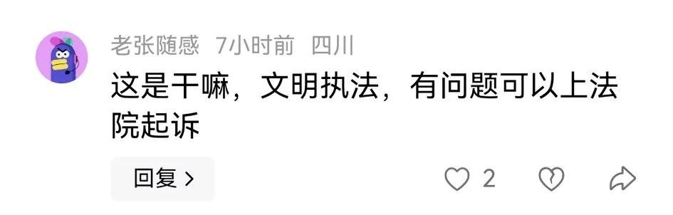 一位来自四川的网友在评论区吐槽,这种执法方式有些不太文明了,如果有问题,可以去法院起诉。