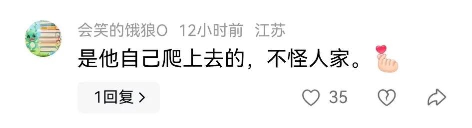 一位来自江苏的网友在评论区留言,是执法人员自己爬上去的,这件事情不能怪司机。