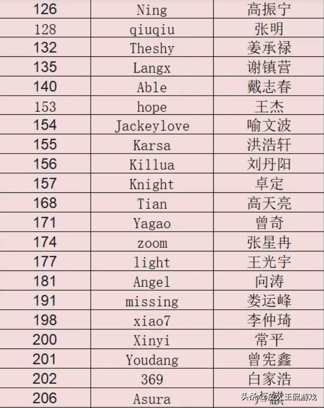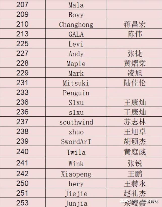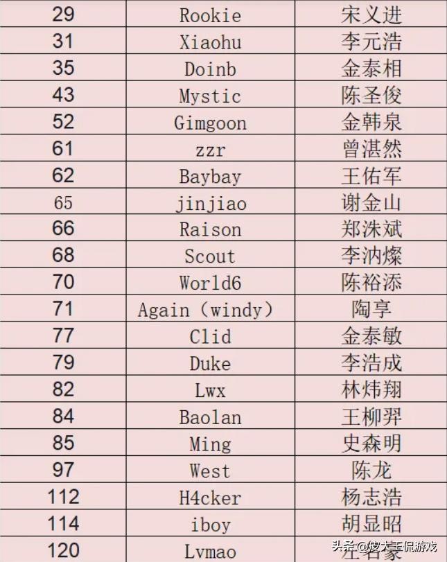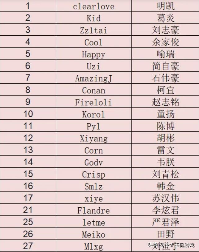 比如说前SNAKE战队的ADC选手水晶哥就遗忘了自己的选手编号,所以在选手编号的列表里面就没有刚子的讯息,在刚子直播的时候也曾被粉丝们问过这个问题,而当时的刚子也只能通过自己的老队友来推算自己的选手编号,不过他可以确定自己肯定是前二十里面的。