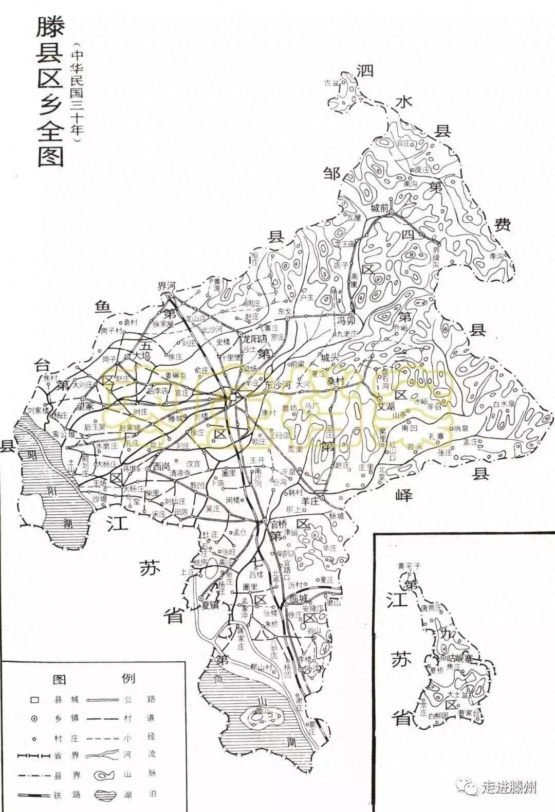 就附枣庄市档案馆馆藏滕县区乡全图(中华民国三十年)如下: