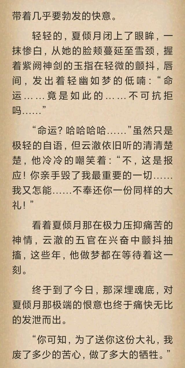 而夏倾月琉璃心觉醒后应该是看到了真相和未来,在她临死之前一直拼命地逃向无之深渊,很有可能是为了改变什么命运,和以前被封印的始祖神末苏有关。他们谁才是轮回了千百世的人呢?
