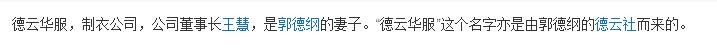 这让我脑袋一动,想起了德云华服,于是我搜索了一下,才知道,德云华服竟然是一个品牌,主要做高级定制的,确实跟德云社有关系,是德云社班主夫人王慧创立的品牌。