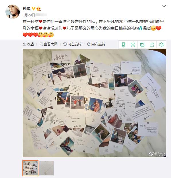前段时间,孙悦生日还发文感谢自己的粉丝,还晒出儿子送给自己的生日礼物。