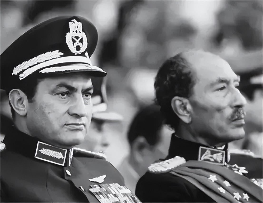 埃及总统埃瓦尔·萨达特一身戎装,精神抖擞坐在主席台上观礼,不时低头与旁边的副总统穆巴拉克谈笑风生,偶尔会站起来,向现场观众们挥手致意。