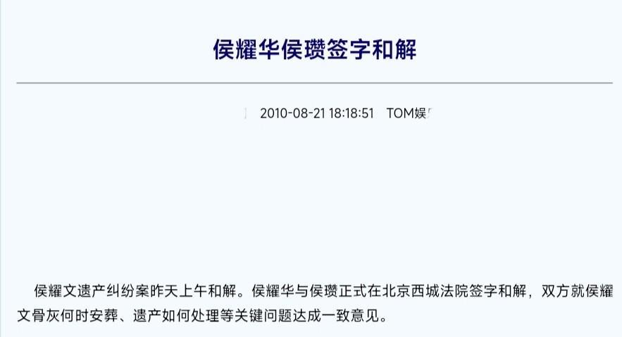 所以他们一家人为侯耀文举行了告别仪式,便各自回归到自己的生活中,侯耀文的遗产依然被二哥侯耀华掌控。