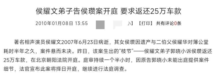 此时,这辆车也成了侯耀华一方攻击侯瓒的武器,因为遗产案中的被告之一郭晓小起诉了侯瓒。