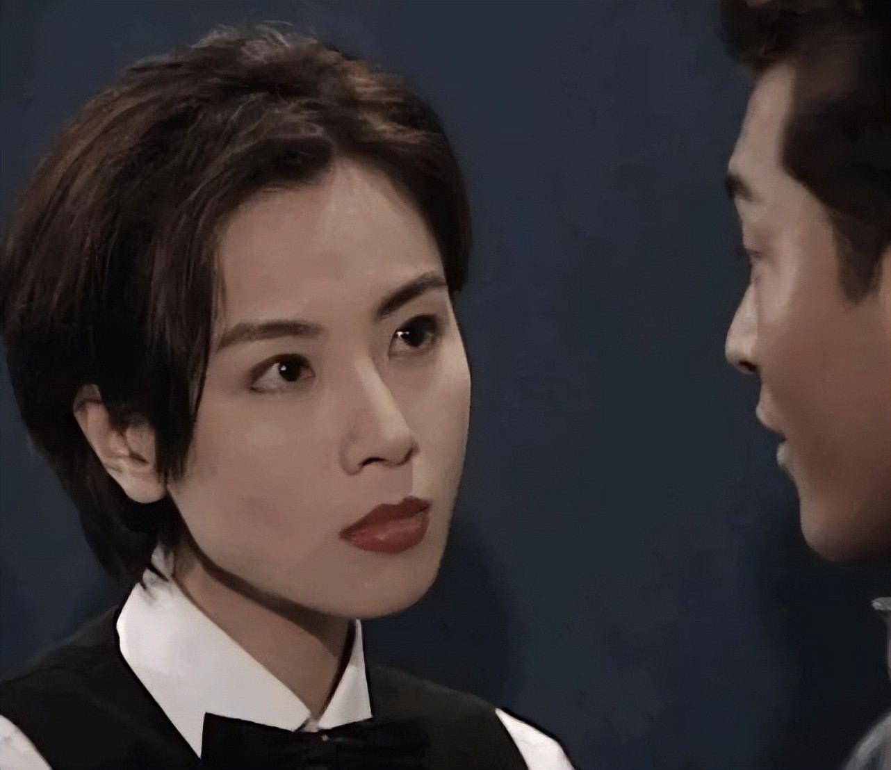 1989年的港姐冠军,1990年,参加香港无线电视台举办的国际华裔小姐竞选荣获亚军,随后签约TVB成为艺员,开始了自己的演绎生涯。她在《巨人》里面的背头出场,真的有被惊艳到,没想到女人梳背头不是过度男性化,而是妩媚又有英气,她的短发真的比长发要惊艳很多。