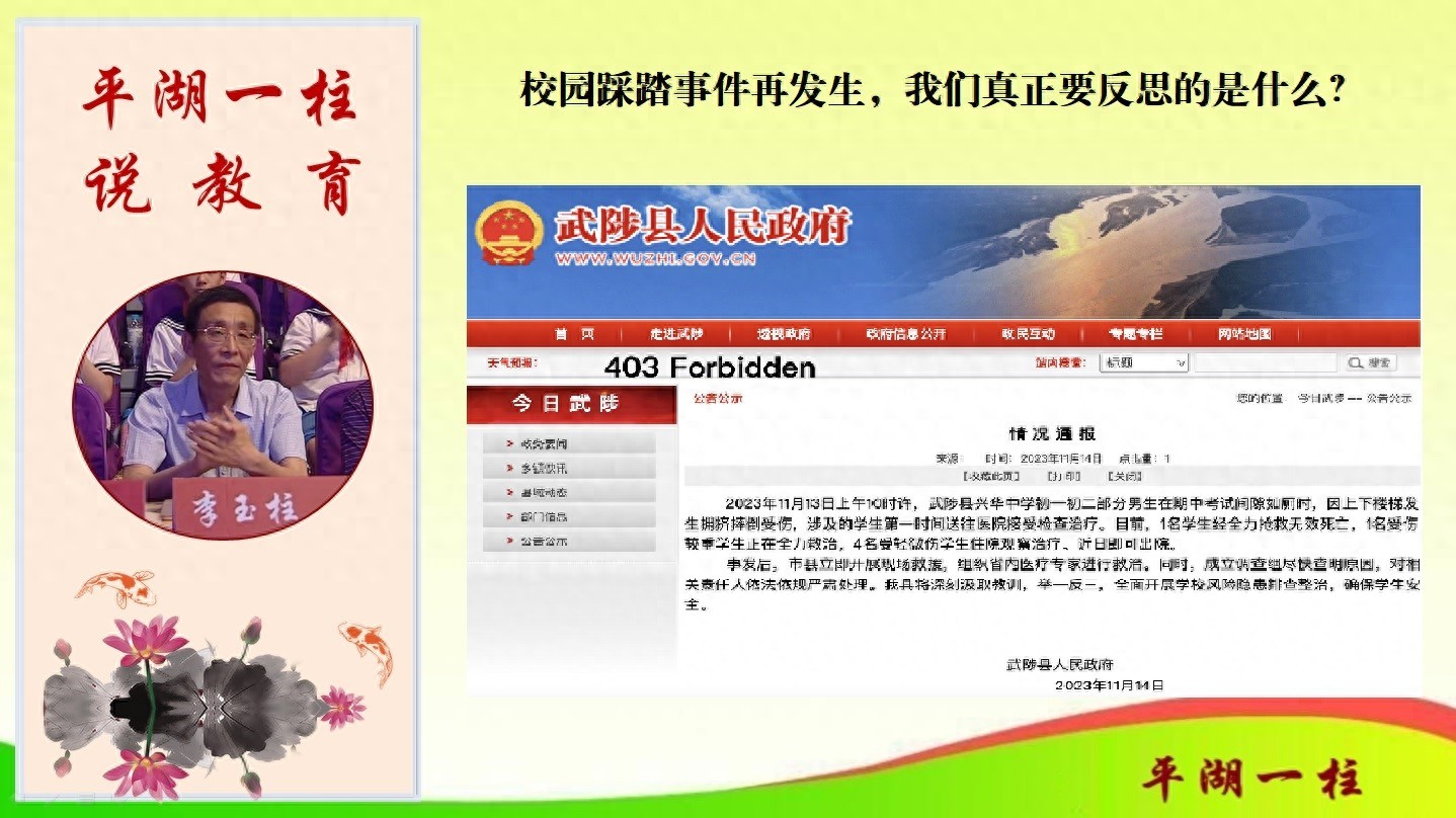 今天打开头条,一则消息令人震惊又扼腕:河南武陟县某中学,13日发生一起学生踩踏事件,致1人死亡,5人受伤。