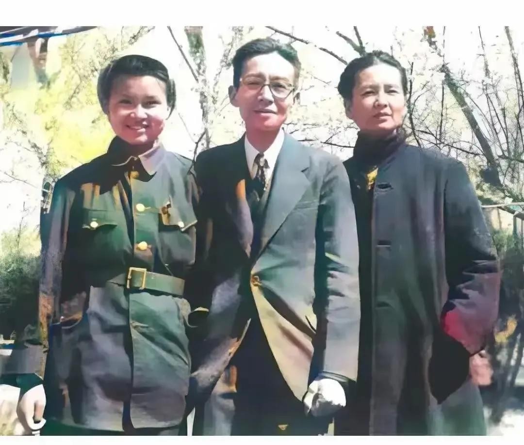 时间来到 1949 年,一个意义非凡的时刻,他们送女儿梁再冰参军,留下了一张珍贵的合影。照片中的梁思成,身着笔挺西装,尽显儒雅气质;林徽因一袭黑衣,气质卓然,眼神中既有对女儿的不舍,又有对未来的期许。