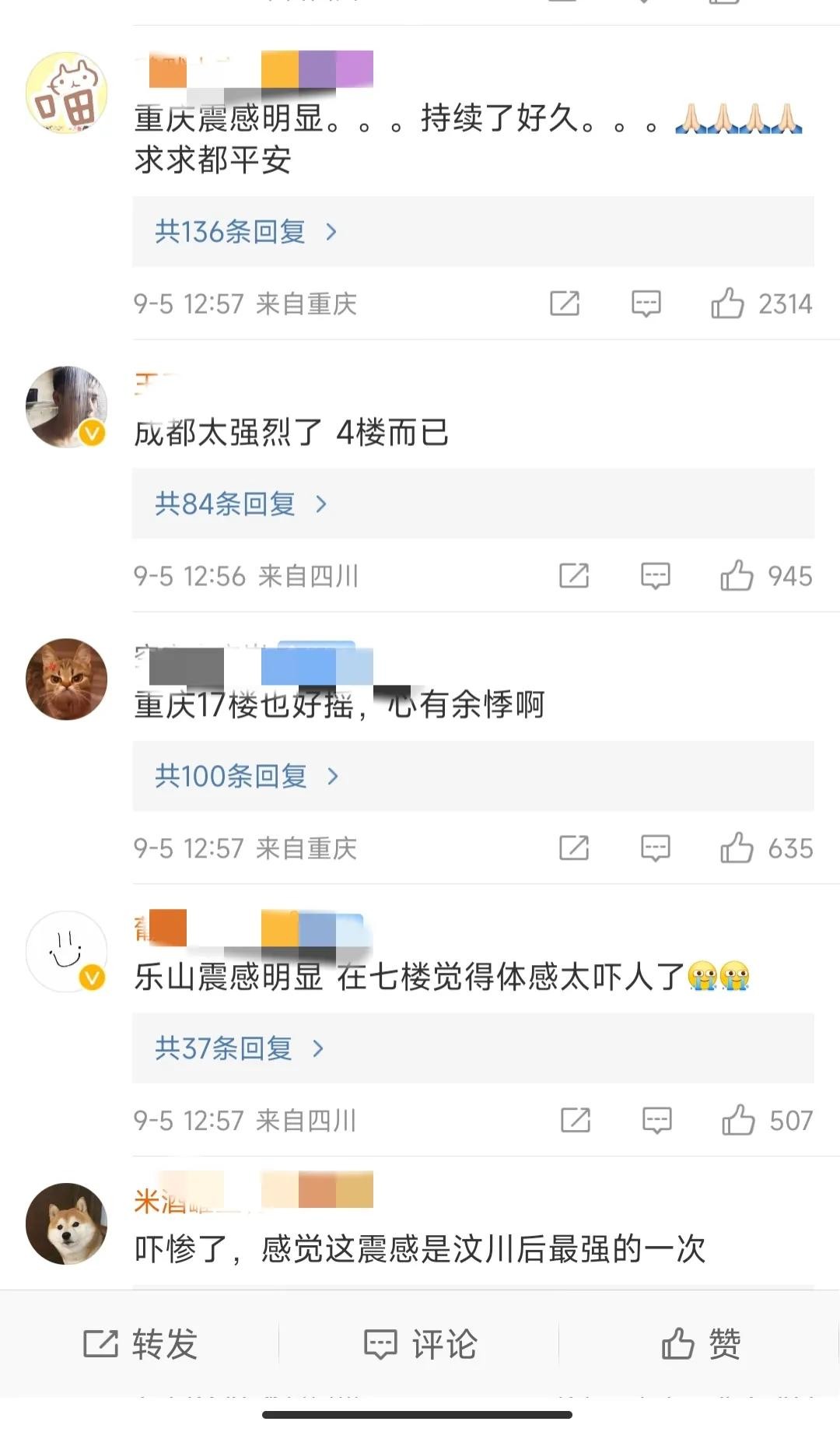 连隔壁的重庆都震感强烈,有人说这次是汶川后最强的一次