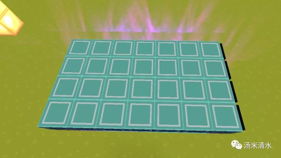 拿出扳手点击一下信号解析器,不断点击会呈现7种颜色的循环,周围再用花纹电石块、乐器方块等进行装饰。