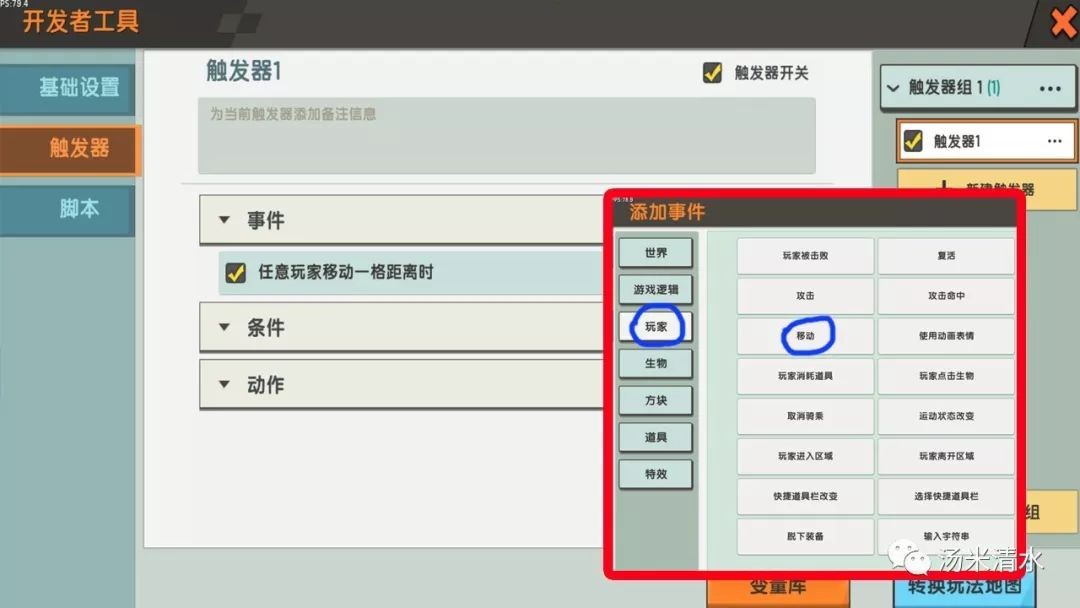 添加舞台特效,需点击地图右上方的蜡笔图标,出现开发者工具菜单,点选触发器。