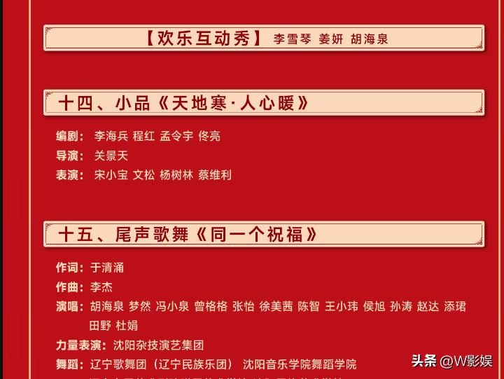 辽宁卫视春晚节目单公布,宋小宝依然压轴,德云社四人改演小品