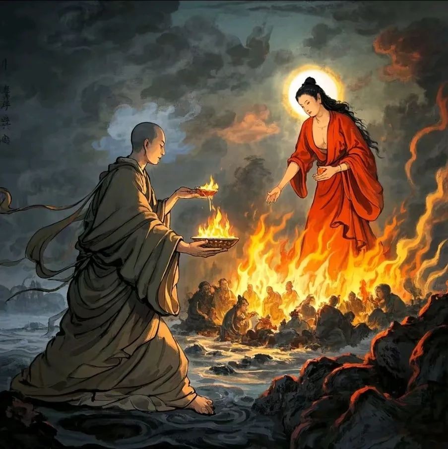 其救母的故事更是广为流传,他看到母亲在饿鬼道受苦,便运用神通给母亲送饭,但食物到母亲嘴边就化为火焰。
