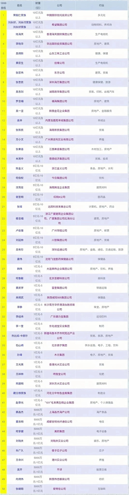 1999年这份富豪榜,藏着这些大佬秘密 | 策划