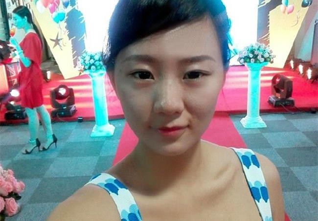 照片里她静静地站在父母中间,脸上洋溢着知足的笑容。