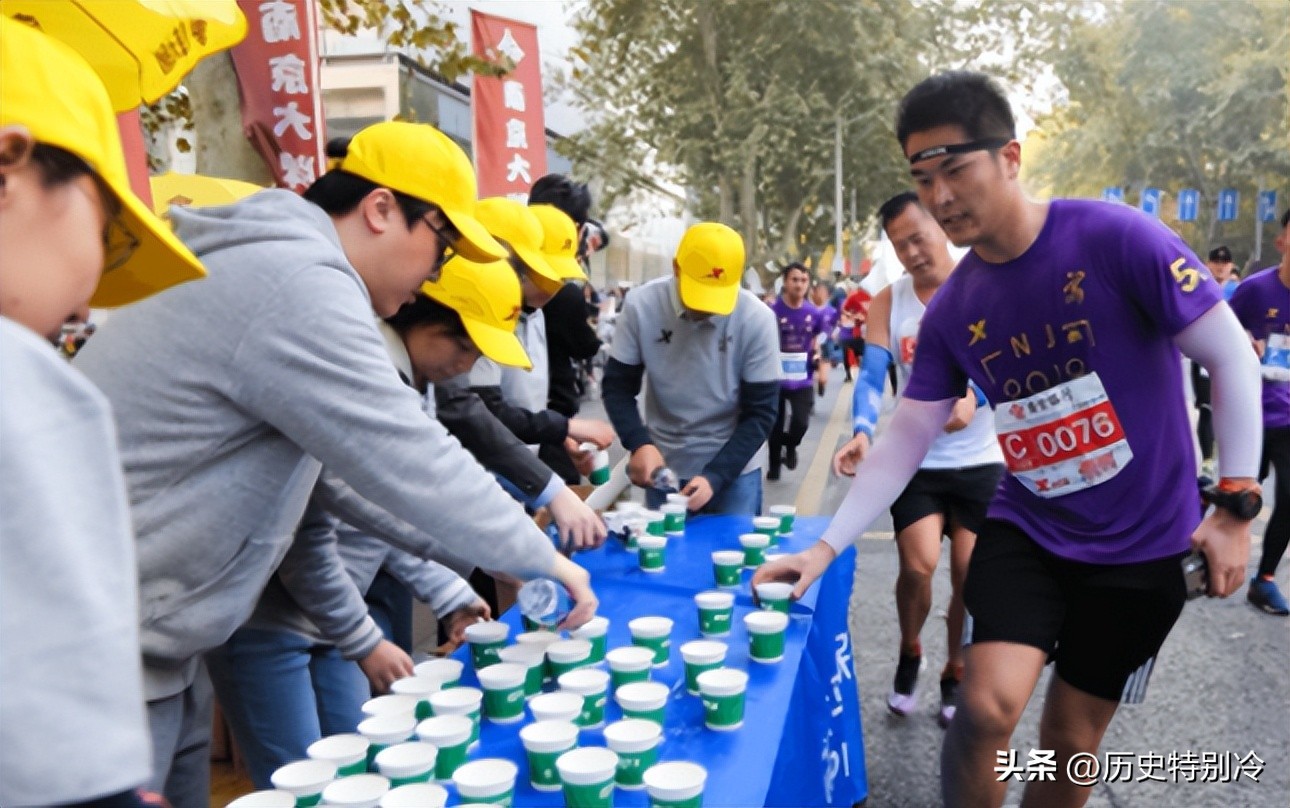 他们一身运动装,可注意力并不在比赛上,反而盯着赛道边的补给点看个不停。