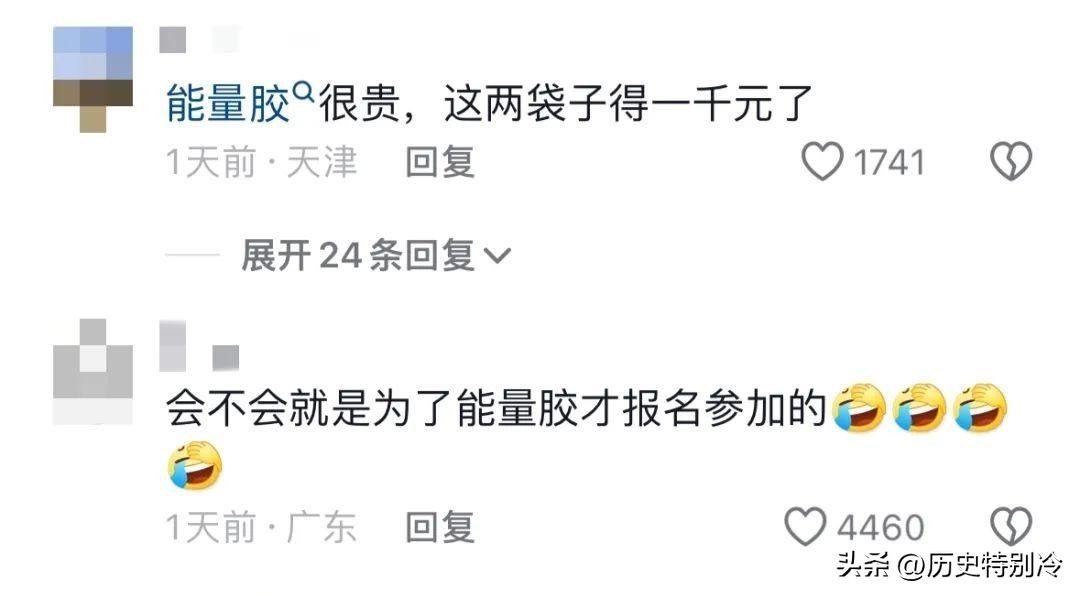 不仅疯狂搜刮能量胶、面包、香蕉等物资,甚至还将“战利品”炫耀式地晒到网上,配文“明年还要来进货”。