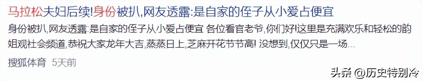 搜狐体育:2024年11月21日,《马拉松夫妇后续!身份被扒,网友透露:是自家的侄子从小爱占便宜 》