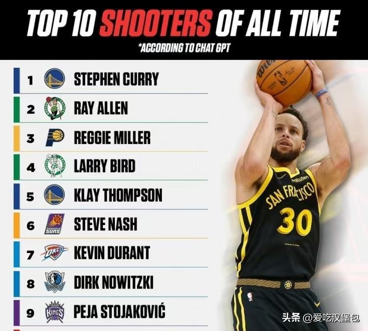 美媒评NBA前十射手:利拉德落选,杜兰特第七,库里无悬念第一!
