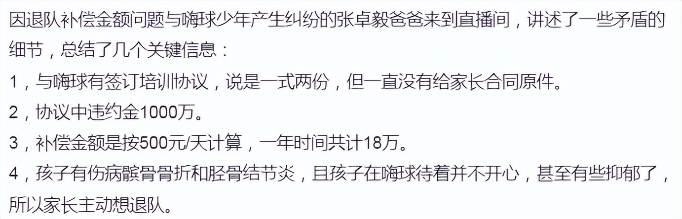 3.孩子家长不认可出这么多的钱,只希望象征性的补偿一点俱乐部。